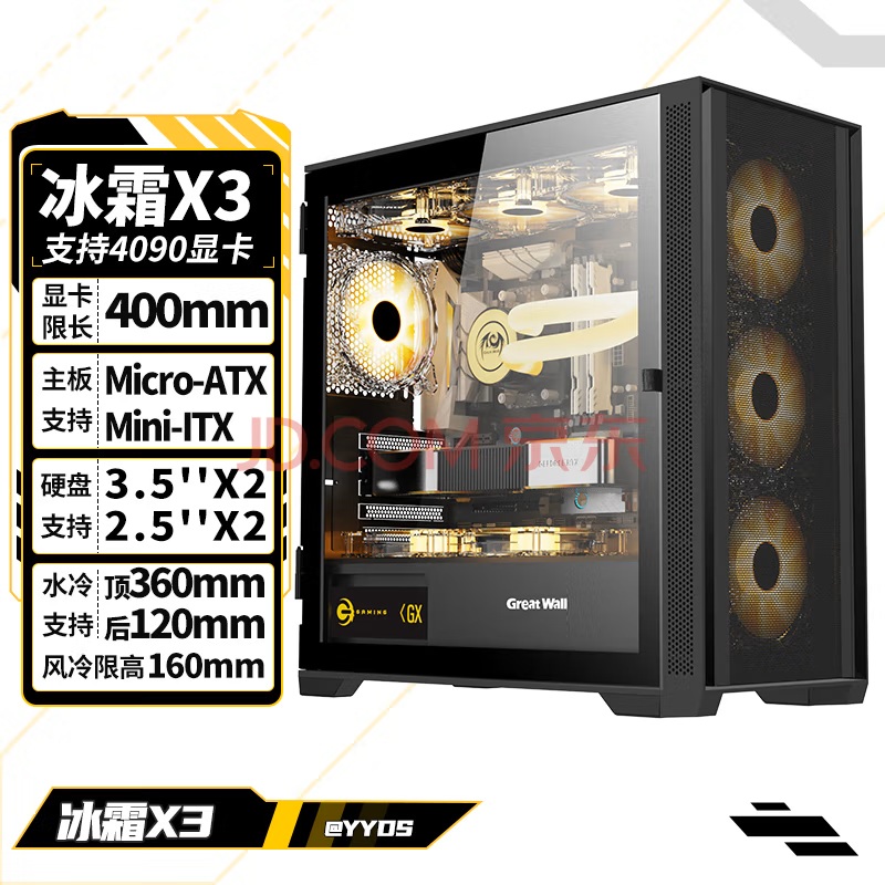 长城X3机箱拥有不错的兼容性,支持Micro-ATX和Mini-ITX主板,同时显卡限长400mm,即使是4080级别的显卡也能轻松容纳。内置四个硬盘位,无论是SSD还是HDD都有充足的扩展空间,灵活满足不同的存储需求。